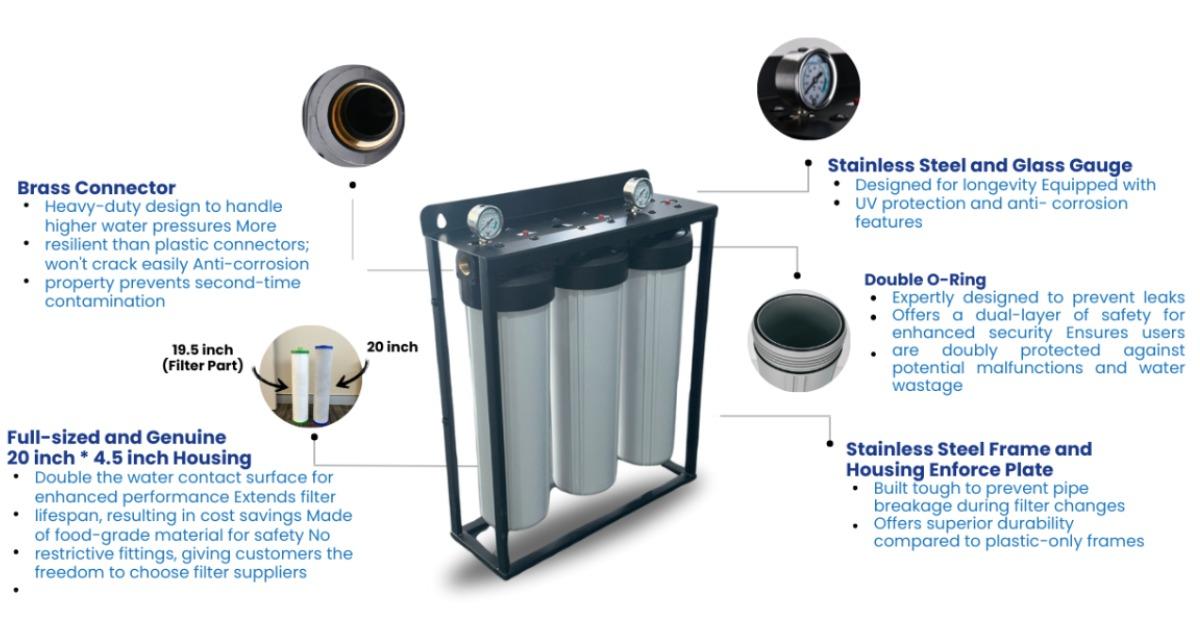 Upgrade your home’s water quality with a robust triple-stage filtration system.